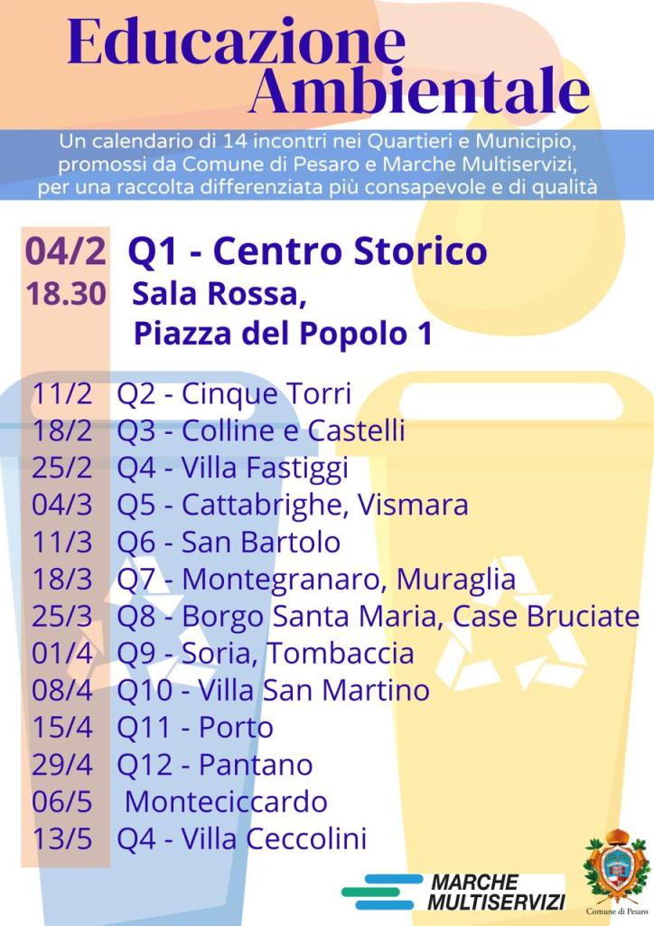 Si parte martedì 4 febbraio alle 18.30, nella sala Rossa del Comune di Pesaro: «il primo appuntamento con l’educazione ambientale sarà con i residenti del Q1, Centro Storico. Ai cittadini