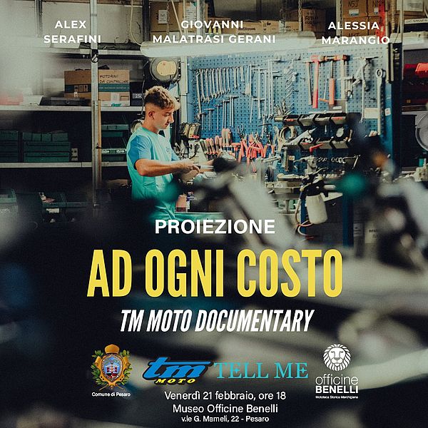 Venerdì 21 febbraio, alle ore 18, il Museo Officine Benelli (viale Mameli 22), ospita la proiezione a ingresso gratuito di “Ad ogni costo” il documentario sulla TM Moto, realizzato da Alex Serafini, Alessia Marangio e Giovanni Malatrasi Gerani.