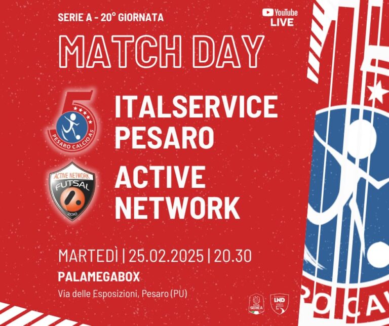 Dopo la sconfitta, severa, eccessiva e maturata in casa dei campioni d’Italia in carica della Meta Catania, capitan Tonidandel e compagni sono chiamati a tirare fuori l’orgoglio. Soprattutto davanti ai loro tifosi, specialmente in un vero e proprio scontro diretto per la salvezza. Pesaro staziona in zona playout, l’Active Network a oggi sarebbe salvo e registra un vantaggio di cinque lunghezze. Da prova a colmare, a ogni costo, martedì.