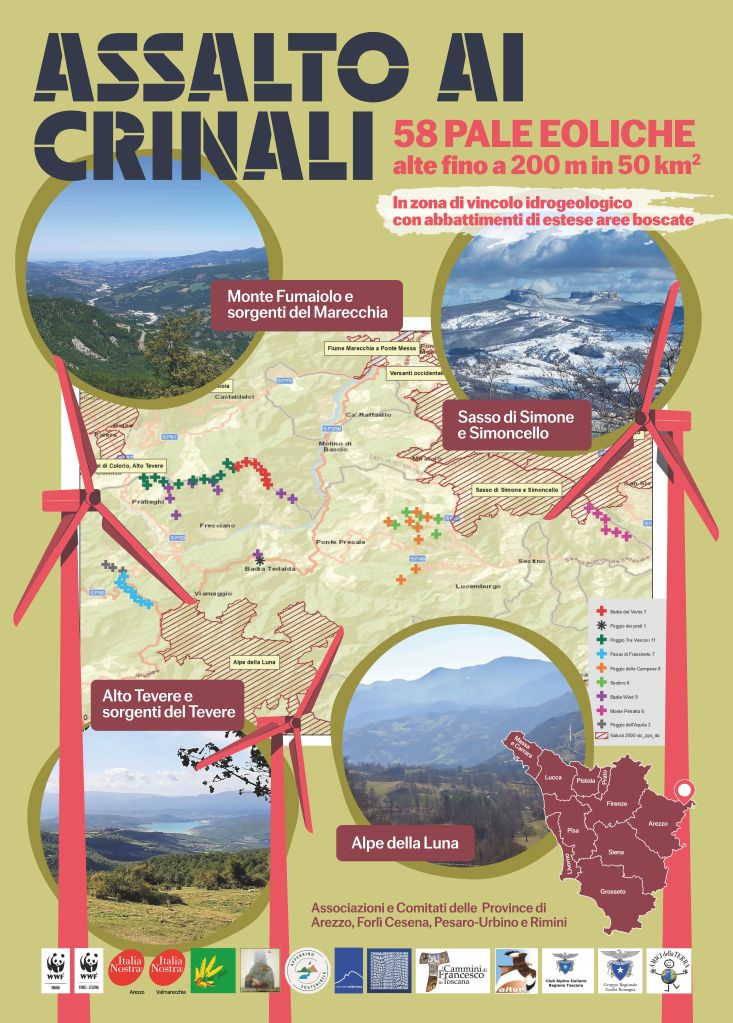Nel Montefeltro sono otto i progetti di impianti eolici per complessivi 58 aerogeneratori di grandissima taglia (fino a 200 metri di altezza, due volte la torre degli Asinelli di Bologna). Gran parte di questi aerogeneratori sarebbero collocati in Toscana – ma al confine con le Marche e la Romagna – e il primo progetto, denominato “Badia del Vento” potrebbe essere autorizzato a breve dalla Toscana. Si assisterebbe così alla trasformazione dell’intera area in un complesso industriale eolico con abbattimenti di ettari di bosco e impatti sulla stabilità dei versanti, con previsione di sbancamenti dei crinali al fine della realizzazione di infrastrutture, strade, trivellamenti profondi per reggere le imponenti torri d’acciaio, nell’incredibile obiettivo di impiantarle, oltretutto, a ridosso di aree di dissesto. Un appello per la tutela di questi territori arriva dal mondo della cultura e dalle principali associazioni con oltre 250 firme. Tra gli altri, hanno sottoscritto la lettera la cantautrice Nada Malanima, il compositore Andrea Guerra, il direttore d’Orchestra Manlio Benzi, il Musicista Massimo Zamboni, il Direttore dell’Accademia Belle Arti di Urbino Luca Cesari, lo storico e critico d’arte Alessandro Giovanardi, la produttrice cinematografica Francesca Andreoli, il Geografo Daniele Zavalloni, il regista Marco Bertozzi, la critica d’arte Martina Cavallarin, la storica e già direttrice della biblioteca Gambalunga di Rimini Oriana Maroni, l’autrice e storica d’arte Raffaella Zama, la presidente dell’ Associazione des Vergers Rosita Copioli e la critica d’arte e scrittrice Sabrina Foschini. Hanno sottoscritto la lettera anche rappresentanti delle principali associazioni e dei comitati locali, tra le quali Italia Nostra Aps, WWF Forlì Cesena, CAI, Amici della Terra, Associazione Altura, Associazione Chiocciola, i Cammini di Francesco in Toscana, Crinali Bene Comune, Appennino Sostenibile, Associazione D’là de’ Foss APS, Associazione Atto Primo Ambiente e Cultura, Artisti in Piazza Pennabilli Festival, Associazione Italia Tibet, rappresentanti della Coalizione TESS e Confcommercio Rimini.