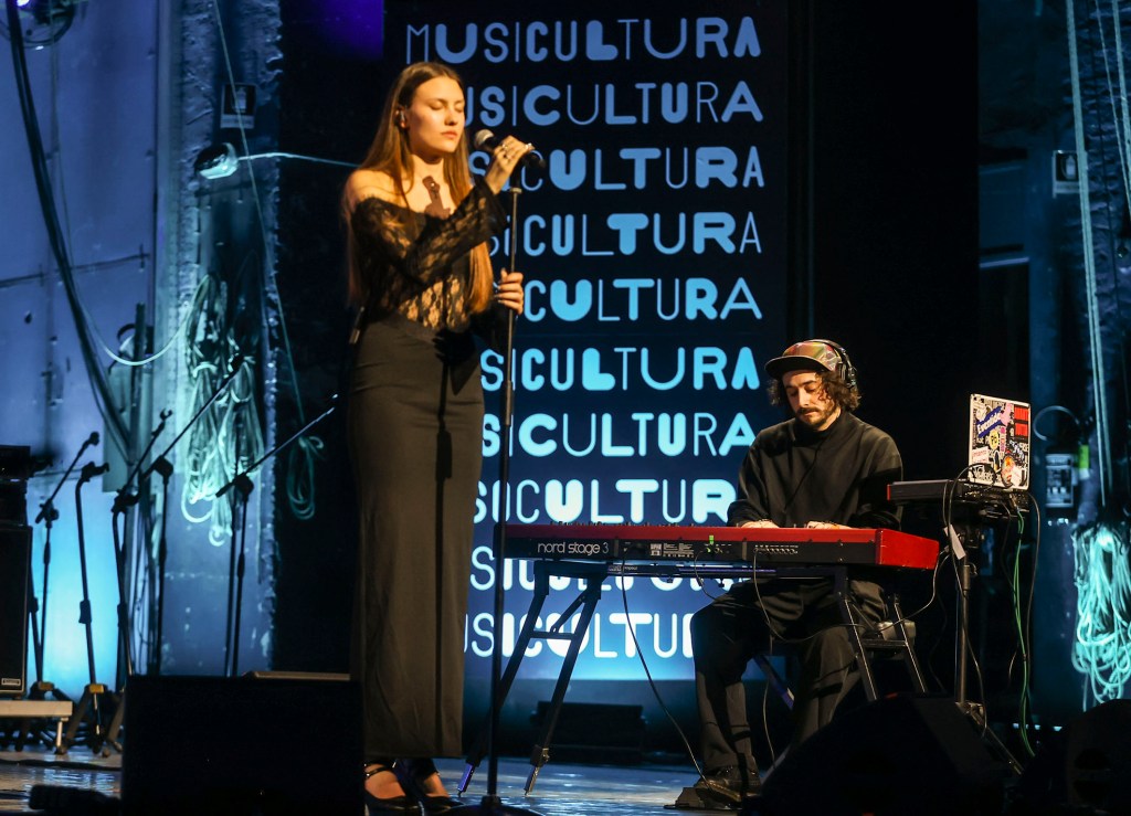 Suggestioni musicali innovative con sonorità strumentistiche e testi di impronta metafisica quelli offerti dal duo Altolucenti, Tobia Salvatori e Samuele Antonelli, classe 1998 di Venezia. Hanno proposto a Musicultura “Attaboy” e “Gemma” due brani sulla vita, la morte e sul ruolo che le persone hanno nel mondo, entrambi presenti in “Peccato Morire” il loro primo album pubblicato nel 2024. Il concept del disco è tratto da una storia vera, quella di Gemma e Angelo. Le canzoni narrano di un viaggio visto da due punti di vista. Il primo, quello di Angelo, che racconta la sua ascensione in cielo e il secondo quello di Gemma, la sua amata, nei suoi ultimi attimi sulla terra.