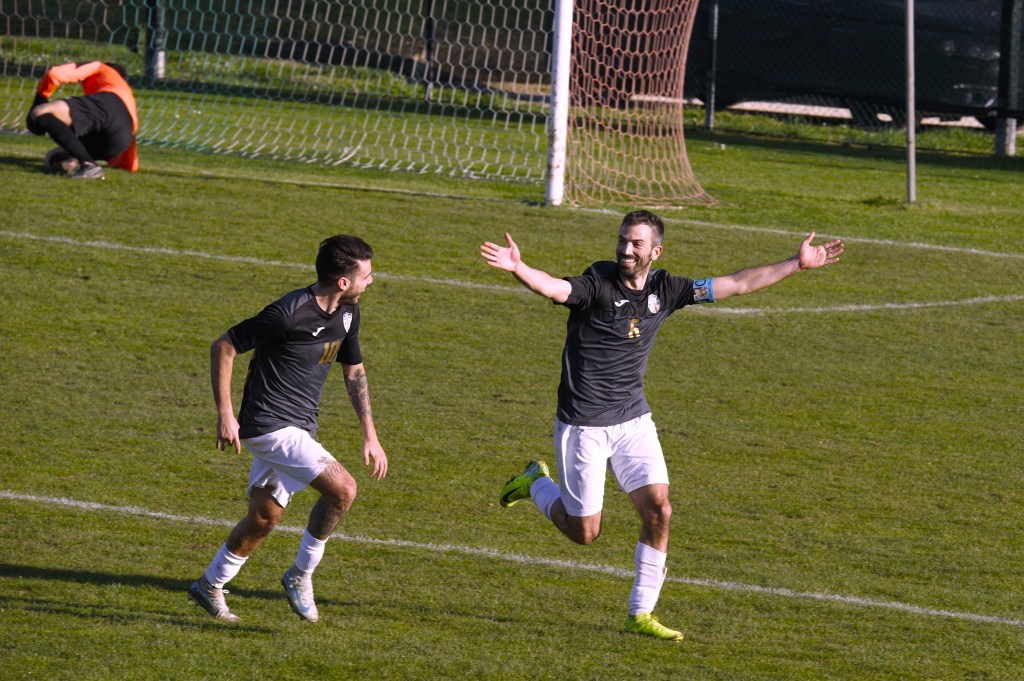 Nella foto: l’esultanza di Tombari dopo il gol