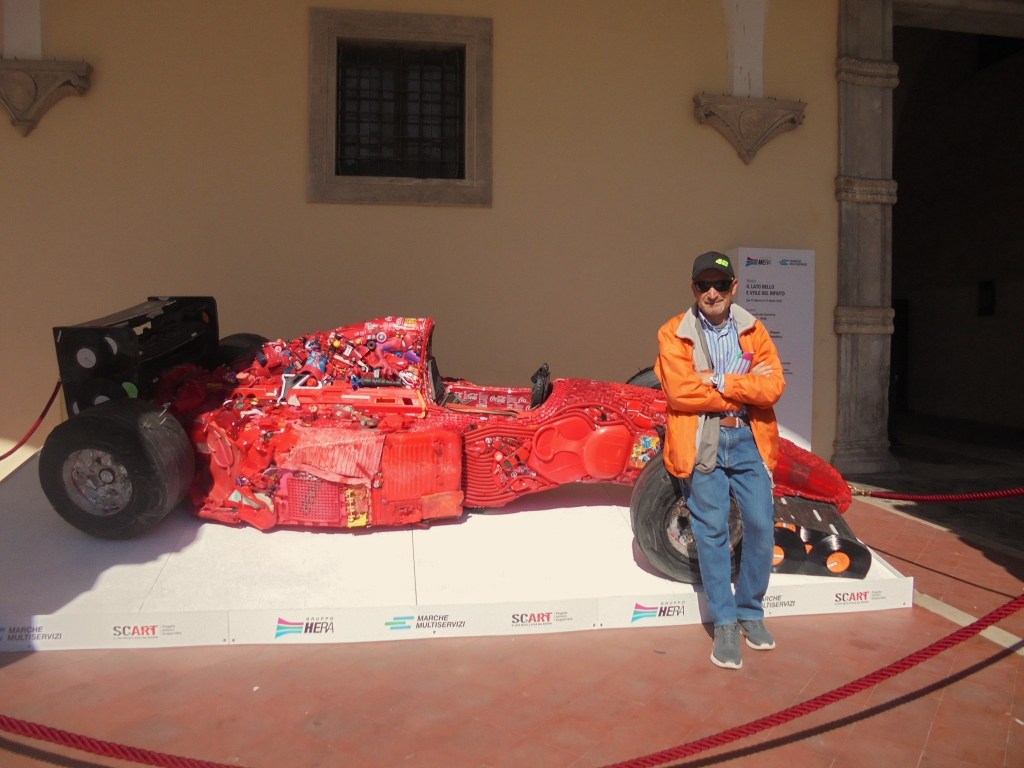 A Pesaro nella Sala Laurana del Palazzo Ducale si possono ammirare dal 18 al 22 marzo delle sculture realizzate con rifiuti industriali e da ciò che normalmente si getta. L’evento, organizzato da Marche Multiservizi (Gruppo Hera) ha coinvolto artisti fra le più importanti Accademie di Belle Arti italiane. L’opera di maggior impatto è però ubicata sotto al porticato del Palazzo Ducale. Si tratta di una monoposto Ferrari F1 rossa a grandezza naturale realizzata con i rifiuti provenienti dall’alluvione in Romagna del maggio 2023.