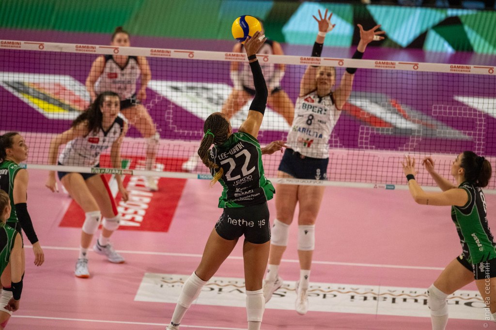 Questo il commento dell’allenatore Andrea Pistola: “Bergamo è venuta qui a fare la sua partita, con grande determinazione e attaccamento alla maglia. In partenza ci hanno messo in difficoltà, peccato non aver saputo concretizzare la rimonta che avevamo fatto nel primo set. Poi però ci siamo aggiudicati i due set che ci servivano per passare il turno. La bella notizia è che giocheremo in casa anche la semifinale, e speriamo che venga ancora più gente a vederci. Ho potuto dare spazio a tutte le nostre atlete, siamo nel finale di stagione e qualcuna di loro ha qualche acciacco per cui è molto positivo che stasera tutte le ragazze scese in campo abbiamo confermato di poter dare il loro contributo”.