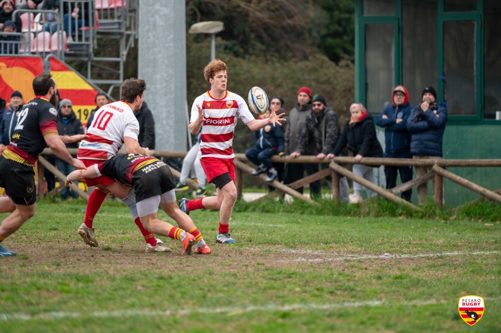 «Quella con Villorba è stata una partita molto tosta, ma anche bella e emozionante». L’ala giallorossa Gabriele Venturini commenta così la vittoria sul campo dell’Omar Villorba. Una vittoria che ha portato la Fiorini Pesaro Rugby sul secondo gradino della classifica, a quota 57 a pari merito con Viadana con cui però i giallorossi hanno vinto gli scontri diretti.