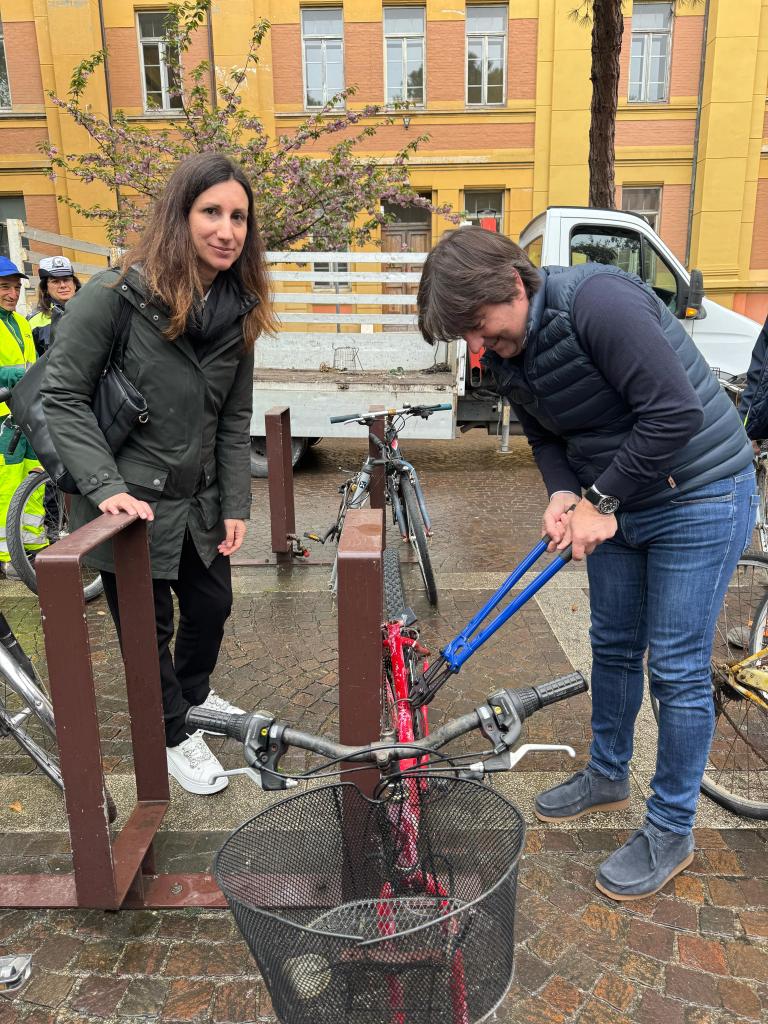 L’operazione, iniziata oggi dal centro storico e stazione, proseguirà per i mesi a venire anche negli altri Quartieri. «Oltre alle biciclette dismesse – riprende il sindaco – saranno rimossi anche i lucchetti abbandonati nelle rastrelliere e nelle recinzioni, presenti soprattutto nella zona della stazione, di cittadini o pendolari che le lasciano incustodite per mesi». Poi ricorda: «Le biciclette verranno smaltite e portate al centro di riciclaggio in via Toscana. I materiali che le compongono verranno recuperati, per garantirne il riuso».