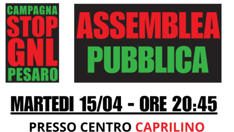 PESARO – Il Comitato Campagna Stop Gnl né qui né altrove, indice per martedì 15 aprile, ore 20.45, presso il centro sociale Il Caprilino, via Bologna, 20, un’assemblea aperta a tutti i cittadini di Pesaro per informare e promuovere una opposizione civile contro il pericoloso impianto di liquefazione del gas che si vorrebbe costruire nell’area Fox del quartiere Tombaccia.