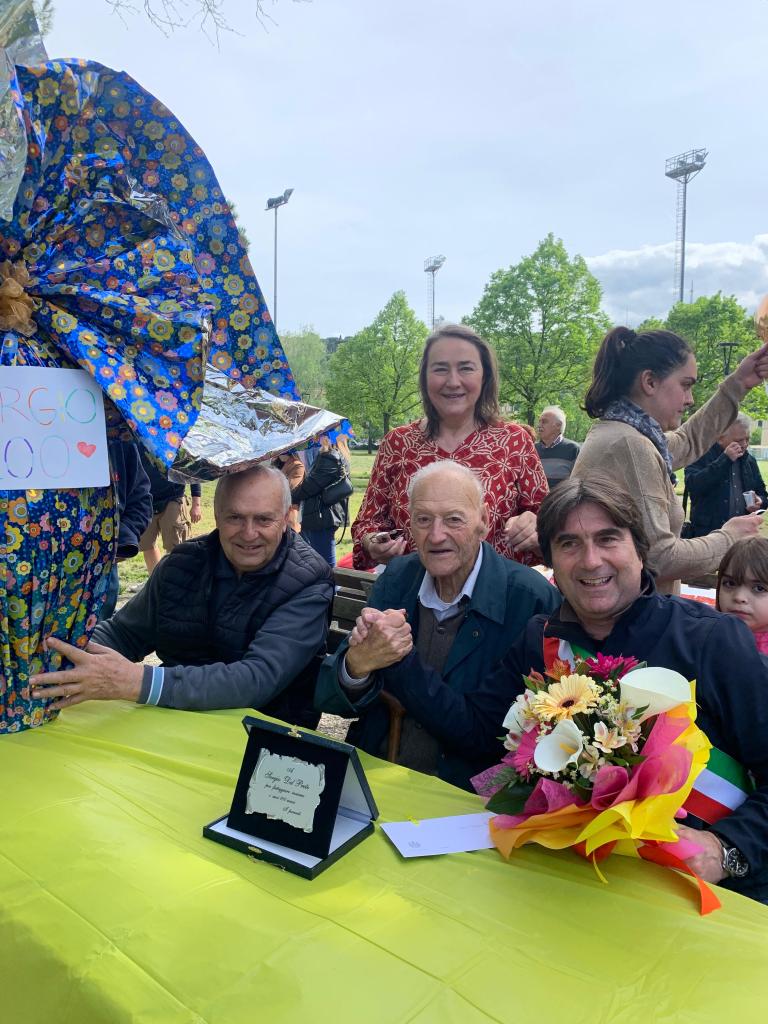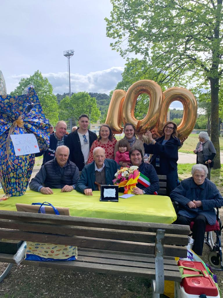| Tre grossi palloncini, 2 torte, almeno 100 tra amici e parenti delle 5 Torri e 100 anni compiuti. Che numeri quelli di Sergio Del Prete, classe 1925, che sabato ha festeggiato il suo compleanno facendo festa al parco urbano “Maestri Del Lavoro” insieme alla moglie Matilde (per tutti Tilde) alla figlia Adriana, ai suoi nipoti Matteo ed Elena e a decine di cari. Il sindaco Andrea Biancani, nel consegnare l’omaggio floreale del Comune ha ricordato che, quella di Del Prete, è «Una vita intensa e piena di rapporti sinceri, duraturi e veri. Sergio, fino ai 30 anni, ha fatto il contadino di un terreno vicino al Santa Colomba, dov’è nato e dove c’era un grande olmo ricordato nei bei regali che gli sono stati fatti. Poi è diventato muratore ed è stato tra quelli che hanno fatto nascere la Casa del popolo di Muraglia; un episodio che abbiamo citato, insieme a tanti altri, seduti nella panchina del parco e contornati di affetti e bei ricordi. Tanti auguri da parte mia e di tutta l’Amministrazione comunale». Comune di Pesaro |