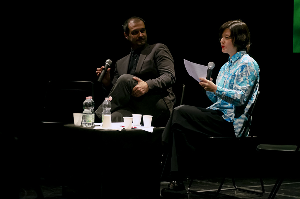 Sono anche intervenuti Ilaria Rossano, coordinatrice del Liceo Coreutico Marconi, per parlare della collaborazione oramai consolidata con Hangartfest grazie ad una serie di progetti che negli anni hanno coinvolto gli allievi della scuola. A prendere parola anche Giosi Sampaolo ed Elisa Ricagni della Compagnia Hunt attiva nelle Marche, che coprodurrà con Hangartfest la coreografa Lucia Mauri.
