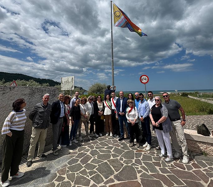 A Baia Flaminia sventola la nuova bandiera Lgbtqia+: «Un simbolo che include tutte, tutti e tutt*. Per ribadire che Pesaro è contro ogni discriminazione, per il rispetto e l’inclusione, a difesa dei diritti», hanno ricordato le assessore alle Pari Opportunità Sara Mengucci e alle Politiche Giovanili Camilla Murgia durante la cerimonia di questa mattina, organizzato per celebrare la giornata internazionale contro l’omolesbobitransfobia.