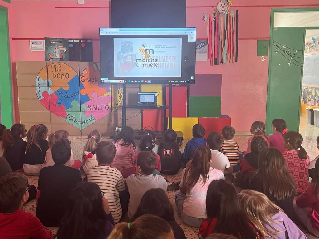 Gli studenti hanno partecipato con entusiasmo alla giornata, che ha avuto inizio con la visione di un racconto video sulla vita delle api, dall’apiario al vasetto, è proseguito con la lettura del libretto illustrativo bilingue delle principali tipologie di miele marchigiano e si è concluso con una sana e gustosa merenda, grazie alle bustine monodose di miele millefiori da spalmare sul pane e fette biscottate, distribuite in tutte le scuole del territorio regionale dai quattro Consorzi apistici.