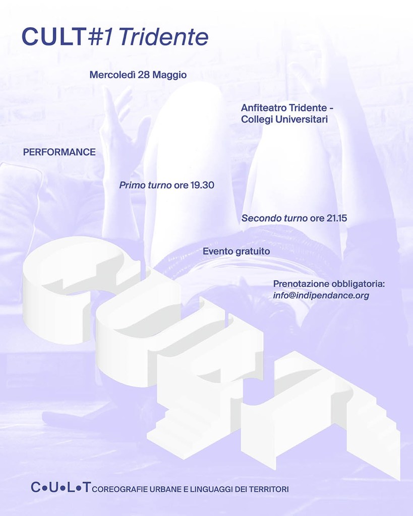 Mercoledì 28 maggio all’Anfiteatro del Collegio Tridente di Urbino va in scena, con un doppio appuntamento alle 19.30 e alle 21.15, la performance conclusiva di C.U.L.T Coreografie Urbane e Linguaggi dei Territori, laboratorio di ricerca nelle perforing arts che esplora la relazione tra movimento e architettura.