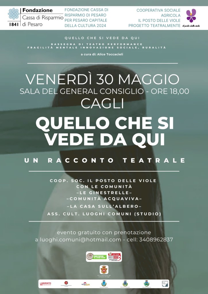 Queste sono alcune delle domande cui il racconto teatrale Quello che si vede da qui cerca di dare risposta venerdì 30 maggio, ore 18.00 nella sala del General Consiglio, Palazzo Comunale, Cagli (PU).