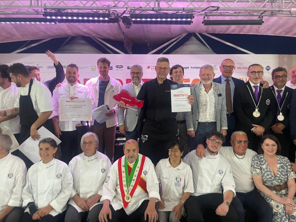 “Per essere riuscito a interpretare la tradizione e la modernità allo stesso tempo’: con questa motivazione il Ciuppin ligure di chef Giuseppe Bizioli, già vincitore nel 2023, si aggiudica il premio come Migliore Zuppa di Pesce Italiana anche in queta edizione. A decretare il suo successo sono stati i voti della giuria popolare composta dagli ospiti dei 4 turni di gara e le valutazioni della giuria tecnica composta dal gotha della critica enogastronomica italiana: Alberto Lupini, direttore di Italia a Tavola (presidente), Davide Eusebi de Il Resto del Carlino, Igles Corelli, volto noto di Gambero Rosso e Sonia Peronaci, cuoca, conduttrice televisiva e scrittrice, fondatrice di Giallo Zafferano.