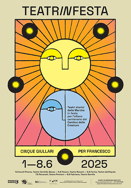 Nasce su iniziativa della Regione Marche TeatrinFesta, nuova manifestazione che intende valorizzare in maniera ancora più efficace il prezioso patrimonio di teatri della regione, definita la “Regione dei teatri” poiché vanta una “densità” di teatri storici che non ha eguali nel territorio italiano. Cinque giullari per Francesco è il titolo della prima edizione che si svolge dall’1 all’8 giugno, curata da Davide Rondoni, in occasione dell’ottavo centenario della composizione del Cantico delle Creature di Francesco d’Assisi, con AMAT, FMC Fondazione Marche Cultura e FORM in collaborazione con i Comuni di Ascoli Piceno, Fabriano, Fermo, Pesaro, Recanati.