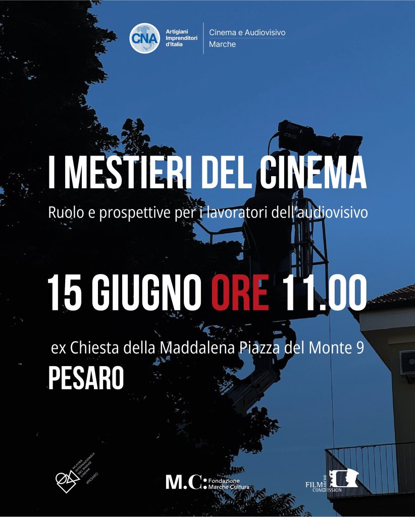 Ed è proprio a queste figure professionali – che troppo spesso appaiono solo nei titoli di coda – che CNA Cinema e Audiovisivo Marche ha organizzato un incontro Domenica 15 giugno (ore 11), nell’ex Chiesa della Maddalena, nell’ambito della 61esima Mostra internazionale del nuovo cinema di Pesaro. Un incontro dal titolo “I Mestieri del cinema”, Ruolo e prospettive per i lavoratori dell’audiovisivo che servirà a fare il punto sul momento d’oro del cinema nelle Marche con tanti set aperti e tante maestranze coinvolte nelle produzioni che hanno scelto la regione per realizzare le proprie opere.