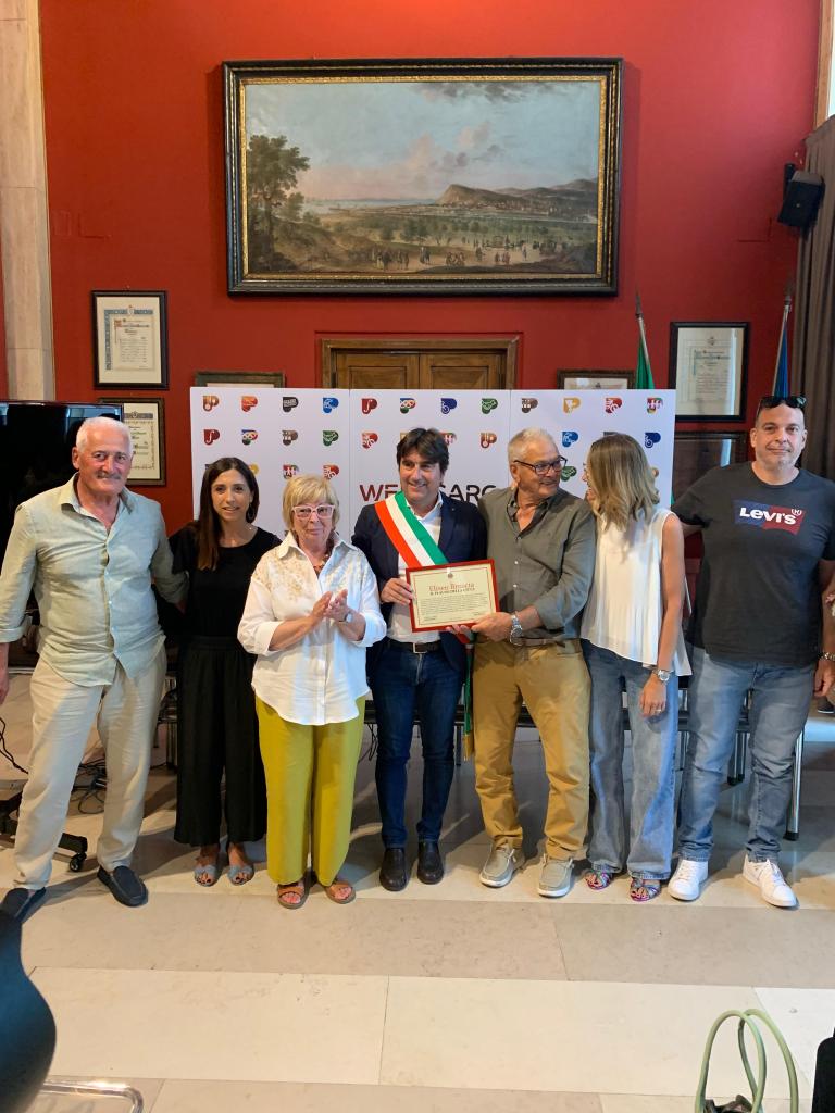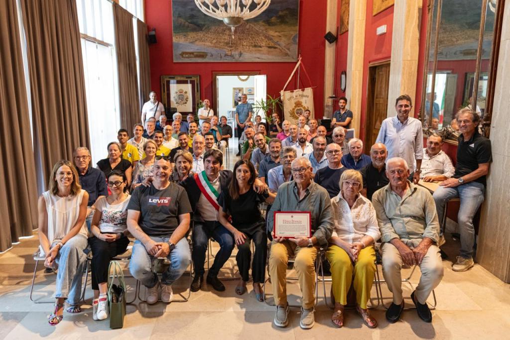 Una sala Rossa in festa ha accolto, stamattina, la consegna del Plauso della Città con cui il sindaco Andrea Biancani e l’assessora allo Sport Mila Della Dora hanno premiato Eliseo Bruscia, un «“maestro di sport e di vita” che nel 1975 assieme ad altri appassionati, ha fondato la squadra di calcio del Novilara, unica realtà sportiva del paese».