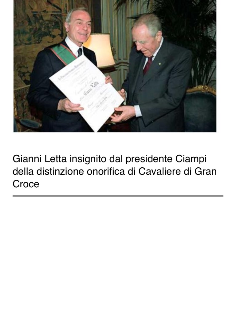 Gianni Letta insignito dal presidente Ciampi della distinzione onorifica di Cavaliere di Gran Croce
