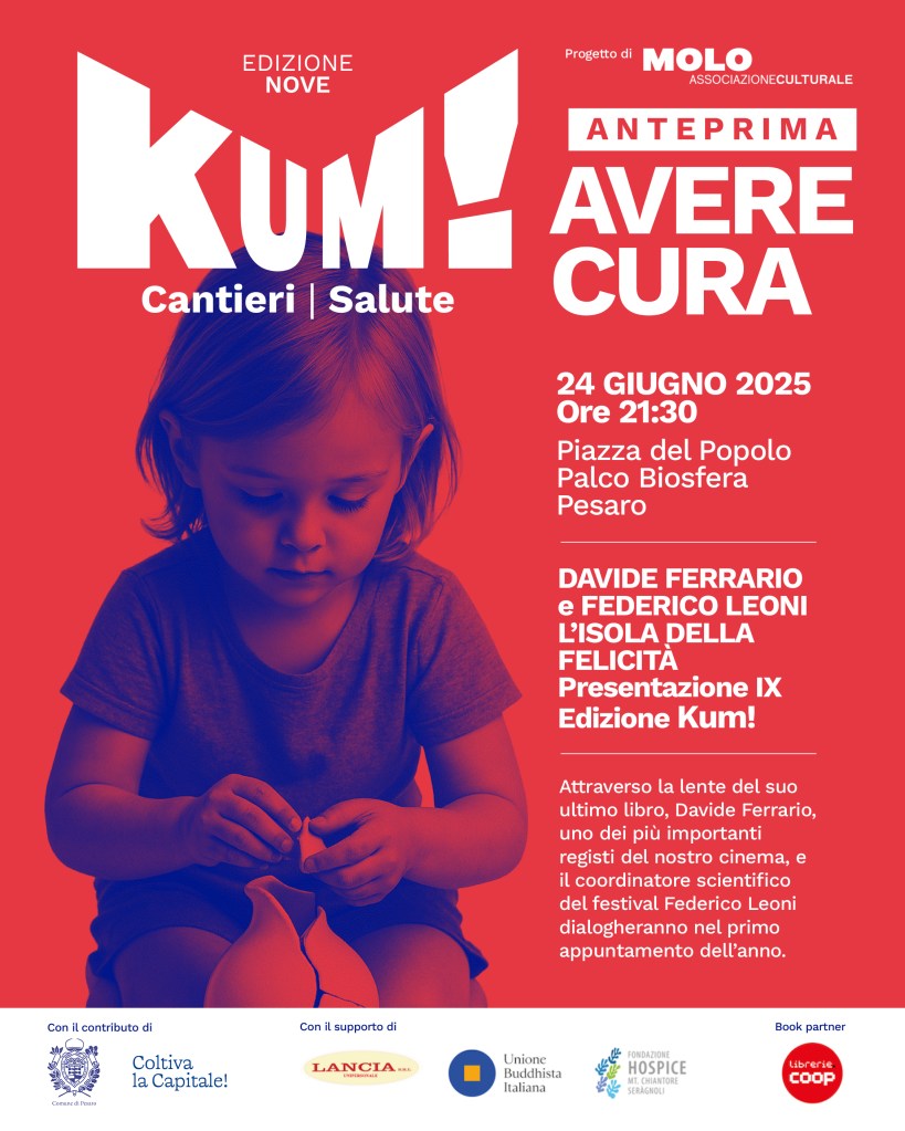 L’anteprima estiva di KUM! si svolgerà in piazza del popolo presso il palco della Biosfera, ingresso libero fino ad esaurimento posti. L’appuntamento vedrà protagonisti Davide Ferrario – regista tra i più significativi del nostro cinema – in dialogo con Federico Leoni, coordinatore scientifico di KUM! che presenterà l’edizione 2025; a guidare la riflessione la lente dell’ultimo libro di Davide Ferrario: L’isola della felicità (Feltrinelli, 2025).