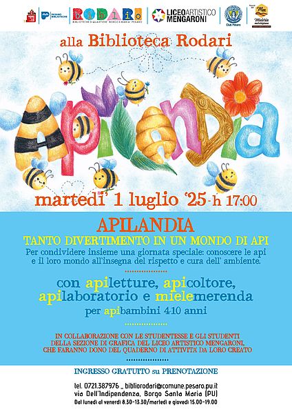Pesaro Città che legge sempre attiva anche durante l’estate. Questa volta è il turno della Biblioteca Rodari di Borgo Santa Maria: martedì primo luglio alle 17.00 propone ‘Apilandia’ un pomeriggio rivolto ai piccoli 4-10 anni per conoscere il mondo delle api all’insegna del rispetto e della cura dell’ambiente.