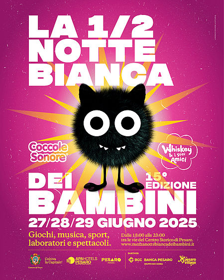 “La 1/2 Notte Bianca dei Bambini” è un evento del Comune di Pesaro, organizzato dall’Associazione Albergatori di Pesaro con il supporto di Show Village e DNA Coccole Sonore. Tra gli appuntamenti anche quelli che rientrano nell’ambito di “Muse! L’arte di crescere”.