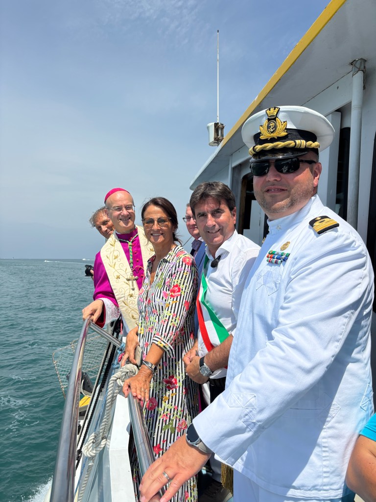 Prima la messa solenne assieme all’arcivescovo Sandro Salvucci, poi corteo delle imbarcazioni in mare con il getto delle corone in memoria dei Caduti, ma come prima tappa l’inaugurazione della nuova opera donata al Comune di Pesaro da Natalia Gasparucci, che “augura” buon viaggio a chi si dirige in mare aperto. La Festa del Porto, ogni anno, si afferma come uno degli appuntamenti estivi che «ci ricorda quanto sia profondo il legame tra la nostra cultura, il mare e la comunità che lo vive. Il Porto è un luogo di accoglienza, di lavoro, di cultura, di scambi e di relazioni. È simbolo di una storia che continua, che guarda alla tradizione ma strizza l’occhio anche al futuro e che vive attraverso le mani, i volti e le storie delle persone che da generazioni lo animano, con passione, dedizione ma anche tante difficoltà». Così il sindaco Andrea Biancani ha celebrato l’annuale Festa del Porto che, ogni anno, porta alla luce una delle manifestazioni più antiche e culturali del territorio, commemorando «una zona della città tra le più belle e suggestive».