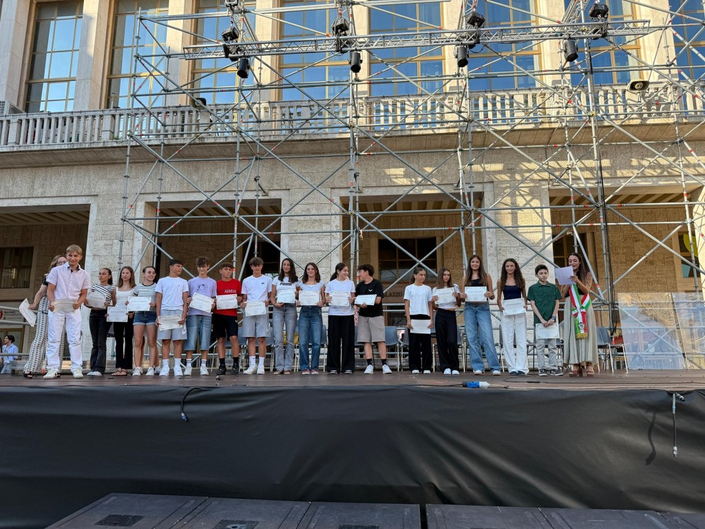 Il Comune celebra in festa il passaggio alle superiori e premia le 100 “Eccellenze” della scuola secondaria di primo grado. Murgia: «Un rito di passaggio da vivere insieme per costruire una scuola in cui sentirsi liberi, crescere uno spirito critico, realizzare il proprio futuro»