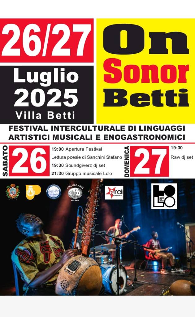 S’intitola On Sonor Betti, il primo festival interculturale di linguaggi artistici, musicali e enogastronomici in programma sabato 26 e domenica 27 luglio, dalle ore 19, nella pista polivalente e nel circolo Arci Villa Betti, nel Municipio di Monteciccardo.