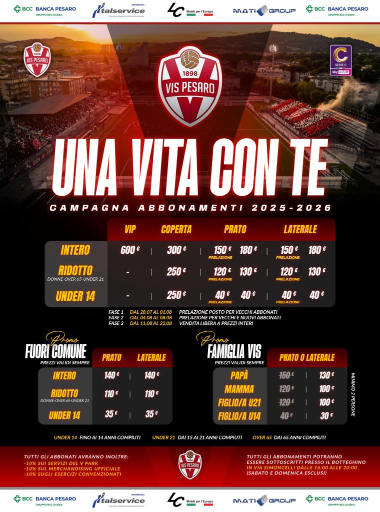 Al Benelli si sogna, e farlo non è mai stato così accessibile. La Vis Pesaro ha già superato quota 375 abbonamenti nella prima settimana di prelazione, più della metà delle 689 tessere emesse lo scorso anno. Il dato è eloquente: i tifosi biancorossi credono nel progetto e si stanno stringendo attorno alla squadra, trascinati dall’entusiasmo e dalla voglia di ricominciare.