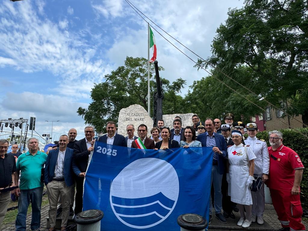 Sentita e molto partecipata la cerimonia commemorativa che ha aperto domenica mattina la 66° Festa del Mare, l’evento clou che celebra il profondo legame della città con il mare e vuole onorare la sua storia marinara e le attività della pesca. Il corpo bandistico della Città di Fano ha aperto la cerimonia a cui è seguita l’alzabandiera e la deposizione di un omaggio floreale alla base della statua ‘La Tempesta’. Toccanti le parole del vescovo Andrea Andreozzi durante la santa messa:“Chiediamo a questa Festa del Mare di essere persone capaci di stabilire rotte significative di riconciliazione, di amore e di pace, rotte di salvezza, di aprire corridoi che portino alla vita, ognuno di noi può percorrerli, può aprili e può permettere la salvezza di tanti. Il mare sia davvero luogo di comunicazioni, dove ci si incontra, dove si salva la vita. Il Mare sia davvero una porta tra mondi diversi e che possa essere un veicolo di pace” ha concluso il vescovo. Due iniziative speciali hanno onorato la cerimonia dopo la messa: la consegna della targa ai vecchi lupi di mare nati nel 1943: Pietro Paolo Esposto Renzoni, Maurizio Nardini, Renzo Olivi, Paolo Paolini e la consegna della Bandiera Blu 2025, il prestigioso riconoscimento di qualità ambientale da parte del delegato della Fee al Sindaco Luca Serflippi.