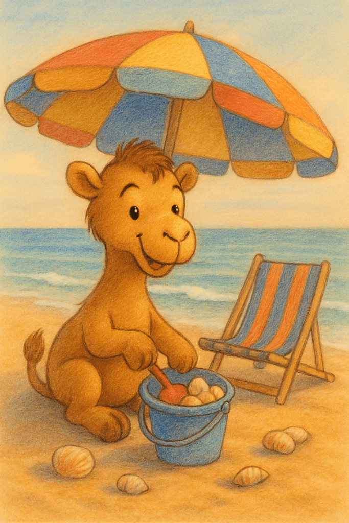 Una mattina d’agosto, Cammello Caramello si svegliò sotto l’ombrellone di pezza con il musetto tutto incrostato di sabbia e briciole di biscotti. Danilo russava beato su una sdraio, mentre Rosalba scriveva poesie nel suo quaderno di conchiglie.