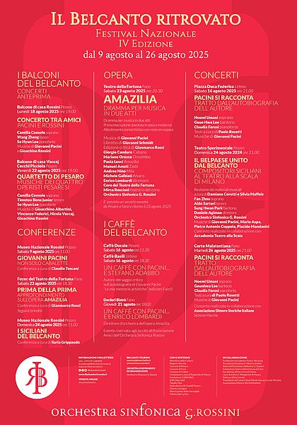Si parte venerdì con il concerto dal balcone di Casa Vaccaj, mentre domenica spazio ai compositori siciliani con una conferenza al Museo Nazionale Rossini e un concerto lirico-sinfonico al Teatro Sperimentale. Chiusura martedì 26 agosto con Pacini si racconta alla Corte Malatestiana di Fano.