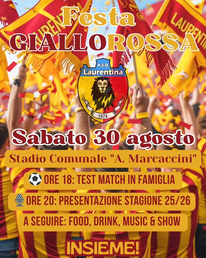 La nuova Laurentina, guidata dal presidente Davide Marinelli, si presenta. Dopo l’amichevole in famiglia che vedrà alle 18 scendere in campo tutta la rosa a disposizione di Mister Daniele Rossi Mercanti, la presentazione dei protagonisti, dalla dirigenza ai giocatori, pronti ad affrontare la stagione 2025-26.