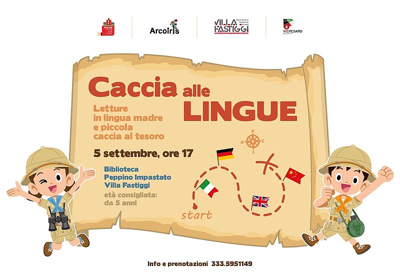 Venerdì 5 settembre alle 17, nello spazio esterno (nei pressi della Little Free Library) della Biblioteca Peppino Impastato – Villa Fastiggi, un’interessante proposta per i più piccoli. L’associazione di Promozione Sociale Arcoiris Aps Ets propone una “Caccia alle lingue” consigliata a partire dai 5 anni.