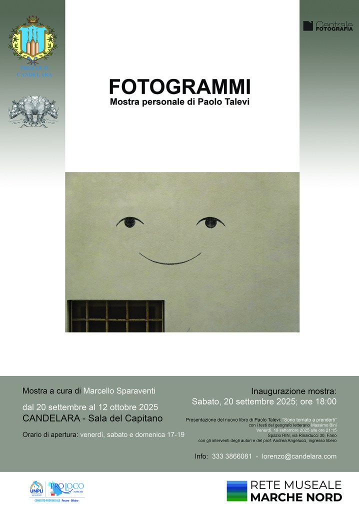 CANDELARA – Sabato 20 settembre, alle ore 18,00, nel giardino di San Francesco sarà inaugurata la mostra monografica dedicata al fotografo PAOLO TALEVI. La mostra è intitolata “FOTOGRAMMI” ed è curata da Marcello Sparaventi.