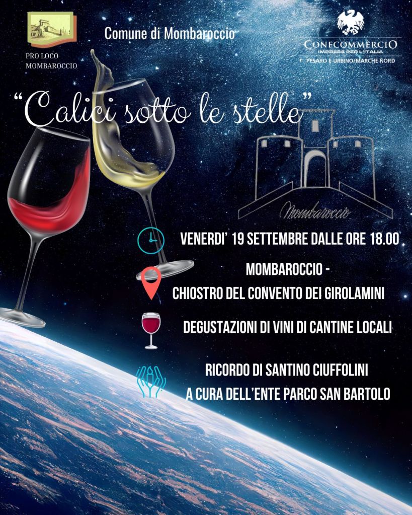 In occasione dell’inaugurazione del Chiostro del Convento dei Gerolimini, oggetto di importanti lavori di ristrutturazione e copertura in cristallo, venerdì 19 settembre, dalle ore 18.00, Mombaroccio ospita “Calici sotto le stelle”: una degustazione di vini offerta dal Comune di Mombaroccio in abbinamento con un primo piatto.