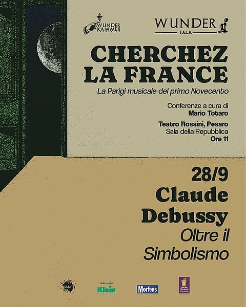 Domenica 28 settembre ore 11 nella Sala della Repubblica del Teatro Rossini a Pesaro, prende il via il ciclo di quattro conferenze con esempi di musica dal vivo, a cura di Mario Totaro e promosse da WunderKammer Orchestra. Il primo incontro su “Claude Debussy: oltre il simbolismo”.