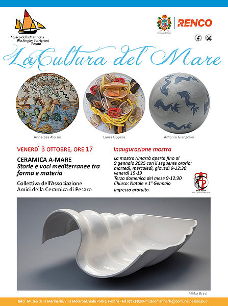 Da oltre 20 anni, L’associazione promuove la cultura dell’arte ceramica pesarese e si pone come obiettivo la divulgazione, a livello teorico e pratico, sia della ceramica storica che di quella contemporanea, grazie all’attività dei soci Maestri Ceramisti. Le opere esposte in mostra, indagano e interpretano la profondità del mare, i suoi misteri, la sua forza e potenza, i suoi colori, profumi e sapori.