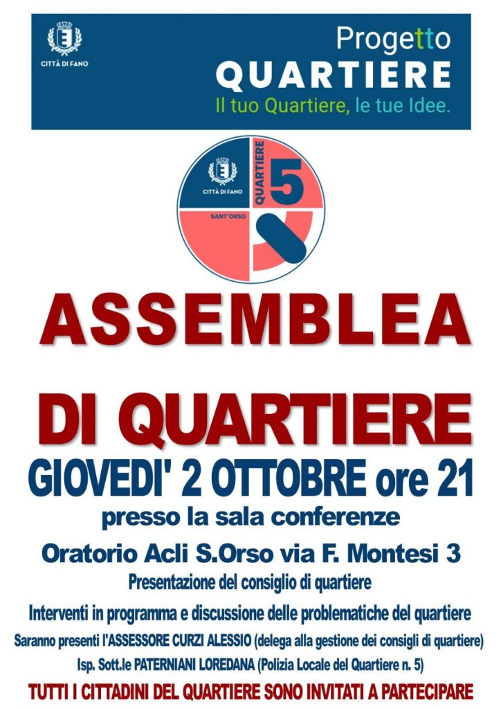 All’assemblea parteciperanno anche l’Assessore Curzi e la vigilessa di quartiere, pronti a rispondere alle domande e alle curiosità dei cittadini.