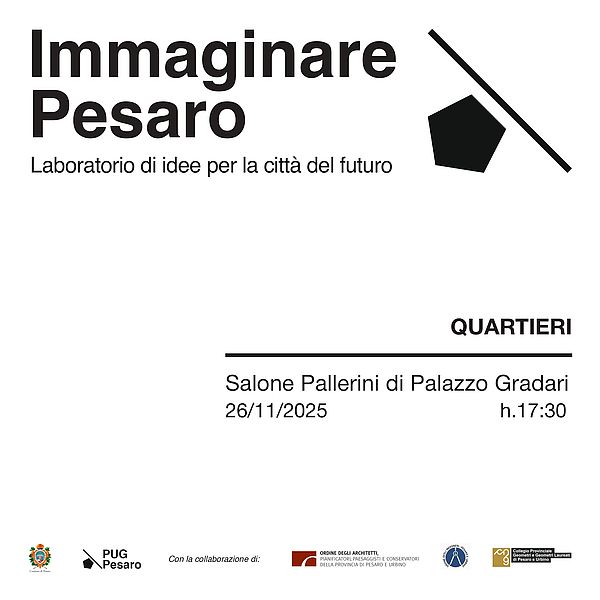 Gli incontri sono organizzati dal Comune di Pesaro, assessorato all’Urbanistica, in collaborazione con l’Ordine degli Architetti della Provincia di Pesaro e Urbino, Collegio provinciale Geometri e Geometri Laureati di Pesaro e Urbino, Ordine degli Ingegneri di Pesaro e Urbino.
