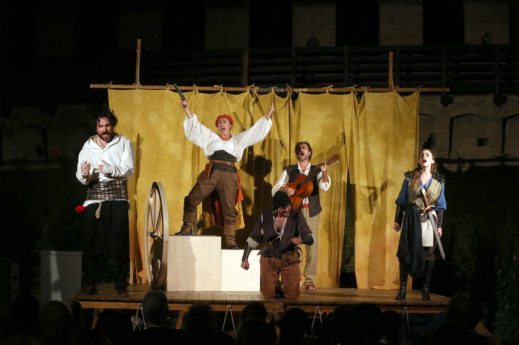 «Lo chiamavano Brancaleone – racconta il regista Carlo Boso – vuole essere un gioioso affresco teatrale degli usi e costumi del Medioevo italiano. La struttura drammaturgica fa riferimento alle commedie di Aristofane ma soprattutto alle opere di Plauto: il tema del “doppio”, tanto caro all’autore dei Menecmi, s’intreccia qui con le caratteristiche salienti del Miles Gloriosus dando vita a una serie di personaggi che echeggiano le atellane latine. Lo scenario e i dialoghi rievocano gli scenari della commedia dell’arte e s’ispirano alle opere cinematografiche che hanno reso famoso il personaggio di Brancaleone nel mondo. Canti, balli, combattimenti scenici, pantomime e lazzi a non finire caratterizzano questa nuova creazione teatrale condotta “a tambur battente” da quattro formidabili interpreti – Rebecca Bianchi, Alessandro Blasioli, Erika Giacalone, Michele Pagliaroni – e un musico polistrumentista, Thomas Bertuccioli. Un teatro d’arte per tutti, dunque, per la più grande gioia di un pubblico plaudente composto da spettatori di ogni età, sesso, condizione sociale ed etnia».