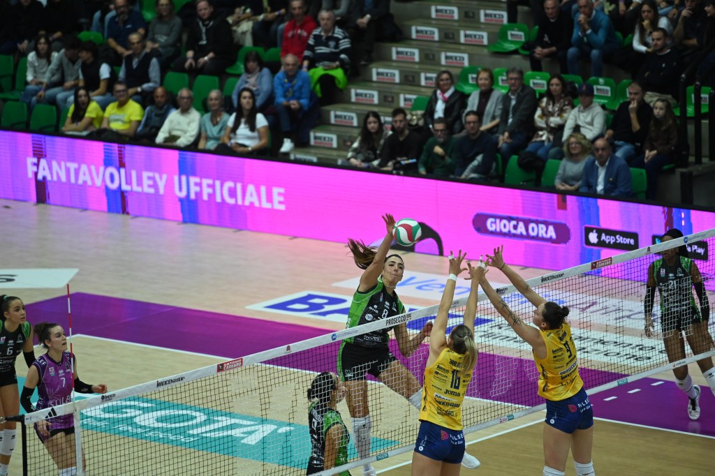 Nella gara di andata la Megabox è tornata a casa senza punti, ma facendo un figurone: si è aggiudicata con autorevolezza il primo set e ha condotto il terzo sino al 16-7. Poi la Prosecco Doc ha giocato tutte le sue carte (in campo Adigwe per una spenta Haak, Chirichella per Lubian e anche Gabi per Daalderop) ed è riuscita a rimettere in piedi il set e la partita. Il quarto set è stato tenuto in pugno dalle campionesse d’Italia e d’Europa, comunque costrette a tenere in campo le titolari sino alla fine. Ottimi primo e terzo set, e viso aperto dall’inizio alla fine per le ragazze del presidente Angeli, capaci di combattere sino in fondo di fronte ad una formazione quasi insuperabile. Come con Chieri sabato scorso, più di un rimpianto per le biancoverdi, giunte ad un soffio dalla conquista di almeno un punto.