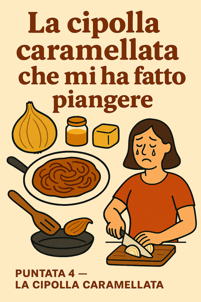 Non tutte le lacrime vengono per nuocere. Alcune arrivano mentre tagli una cipolla, e ti ricordano che sei viva. Altre arrivano quando ti accorgi che la cipolla che stai tagliando è l’ultima cosa rimasta nel frigo. E poi ci sono quelle che scendono quando, contro ogni previsione, la cipolla diventa caramellata.