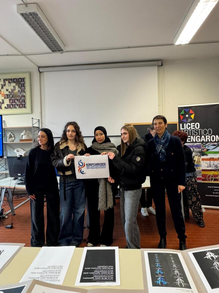Per la prima volta in Italia, la città ospiterà i Campionati del Mondo di Ginnastica Acrobatica della FIG – Federazione Internazionale di Ginnastica, alla Vitrifrigo Arena, in un appuntamento di portata internazionale che vedrà la partecipazione di 40 Paesi e una copertura mediatica globale tra televisioni, piattaforme digitali e social network. Così Marco Cadeddu, titolare di Esatour e membro del comitato organizzatore locale Marco Cadeddu, presente oggi insieme a Amarylisz Walcz: «Un logo che farà il giro del pianeta – ha dichiarato –. Le 40 delegazioni provenienti da tutto il mondo lo porteranno ovunque: sarà presente sui social, nei materiali ufficiali e nelle trasmissioni televisive internazionali. Siamo felici che la collaborazione con il Liceo Mengaroni prosegua, dal 2021 e in questi anni sono stati realizzati diversi progetti grafici di grande valore. Guardiamo già al futuro: nel 2027 Pesaro ospiterà due Campionati Europei, a marzo la ginnastica aerobica e a settembre nuovamente l’acrobatica e avremo piacere di avere sempre la collaborazione del Liceo Mengaorini».