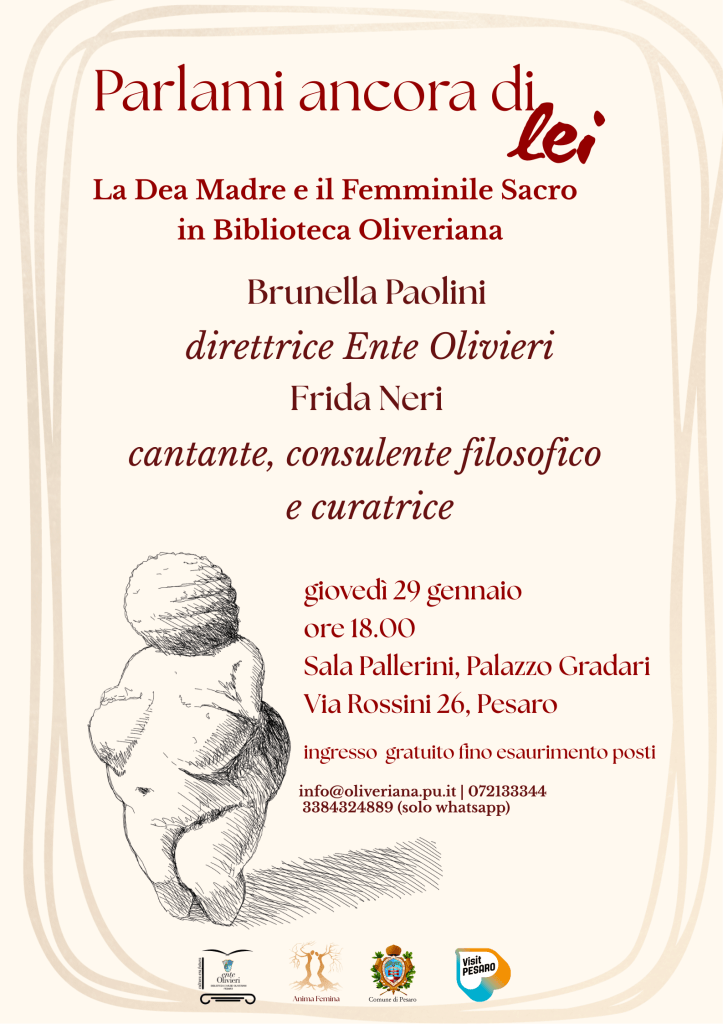 A questi e altri interrogativi si cercherà di dare risposta nel corso dell’incontro Parlami ancora di Lei. La Dea Madre e il femminile Sacro in Biblioteca Oliveriana,
