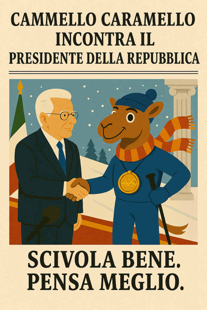 Non era previsto dal protocollo, ma si sa: quando c’è di mezzo Cammello Caramello, l’imprevisto diventa poesia. Ieri pomeriggio, in una sala innevata del Quirinale allestita per l’occasione, il nostro campione olimpico ha incontrato il Presidente della Repubblica. Un incontro che ha unito istituzioni e fantasia, sport e sogno, con una naturalezza che solo Caramello sa portare.