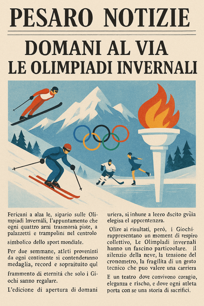 Domani si alza il sipario sulle Olimpiadi Invernali, l’appuntamento che ogni quattro anni trasforma piste, palazzetti e trampolini nel centro simbolico dello sport mondiale. Per due settimane, atleti provenienti da ogni continente si contenderanno medaglie, record e soprattutto quel frammento di eternità che solo i Giochi sanno regalare.