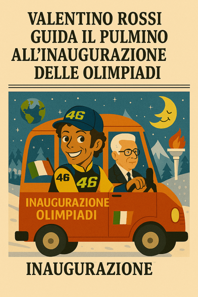 Non è una scena da telegiornale, ma da favola moderna. Questa mattina, sotto una neve lieve e festosa, Valentino Rossi ha acceso il motore di un pulmino decorato con bandiere italiane e fiaccole olimpiche. A bordo, niente meno che il Presidente della Repubblica e il nostro eroe Cammello Caramello, diretti all’inaugurazione ufficiale dei Giochi Invernali.