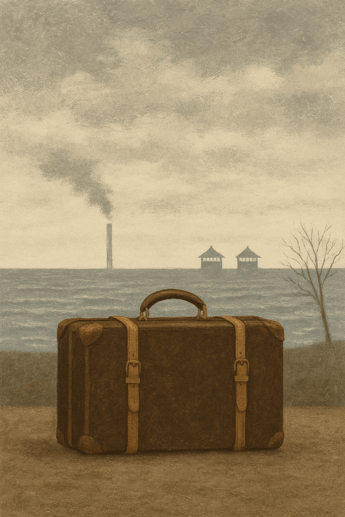 L’illustrazione che accompagna l’articolo è un’immagine che parla senza alzare la voce: una valigia sola davanti all’Adriatico, come quelle che hanno attraversato la frontiera orientale con dentro una vita intera.