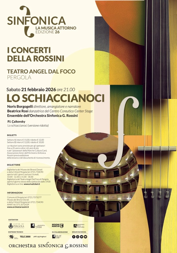 Pesaro, 20 febbraio 2026 – Dopo il successo delle precedenti produzioni dedicate al pubblico delle famiglie e dei più giovani, l’Orchestra Sinfonica G. Rossini riporta in scena uno dei titoli più amati di sempre: Lo Schiaccianoci di Pëtr Il’ič Čajkovskij, in una coinvolgente versione ridotta pensata per i piccoli teatri storici marchigiani e per un ascolto partecipe, vicino, quasi “di casa”.